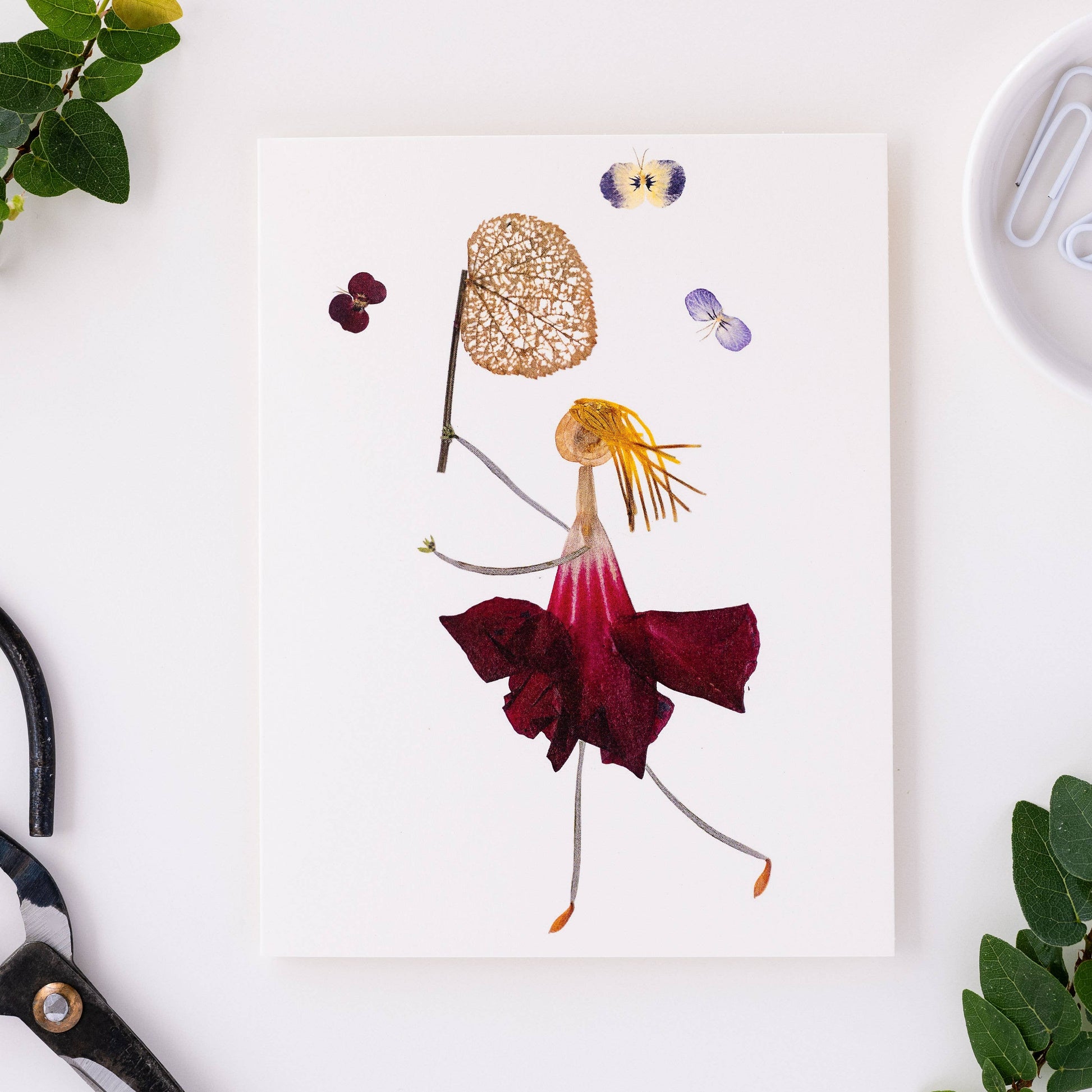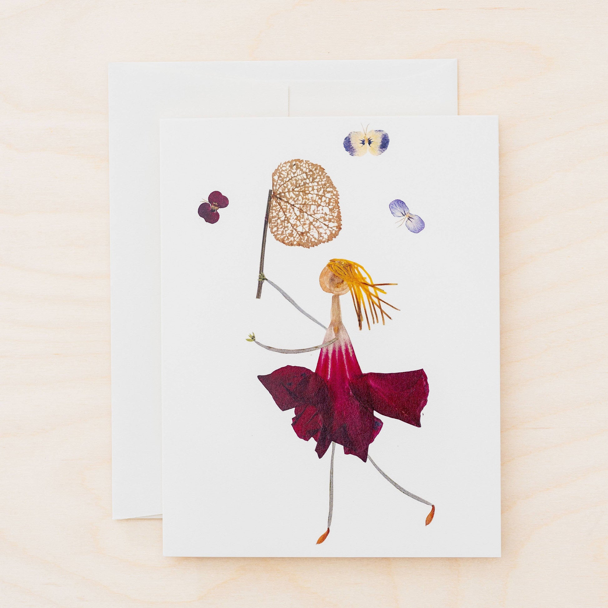 A nostalgic card, reminding us of when childhood was carefree and we ran barefoot in the grass! Featuring the blossoms of Mandevilla and Johnny-Jump-Ups, this card is lovely as a thank you note, just because card or any occasion where the innocence of childhood is welcomed. A high-resolution digital print of an original piece of art. A2 card measures approximately 4.25 x 5.5 inches. Includes a matching envelope. An explanation of the botanicals used is printed on the back. Printed on Forestry Stewardship Council-certified card stock. Blank inside for all reasons and seasons. Mother Nature ... but with a lot more personality!