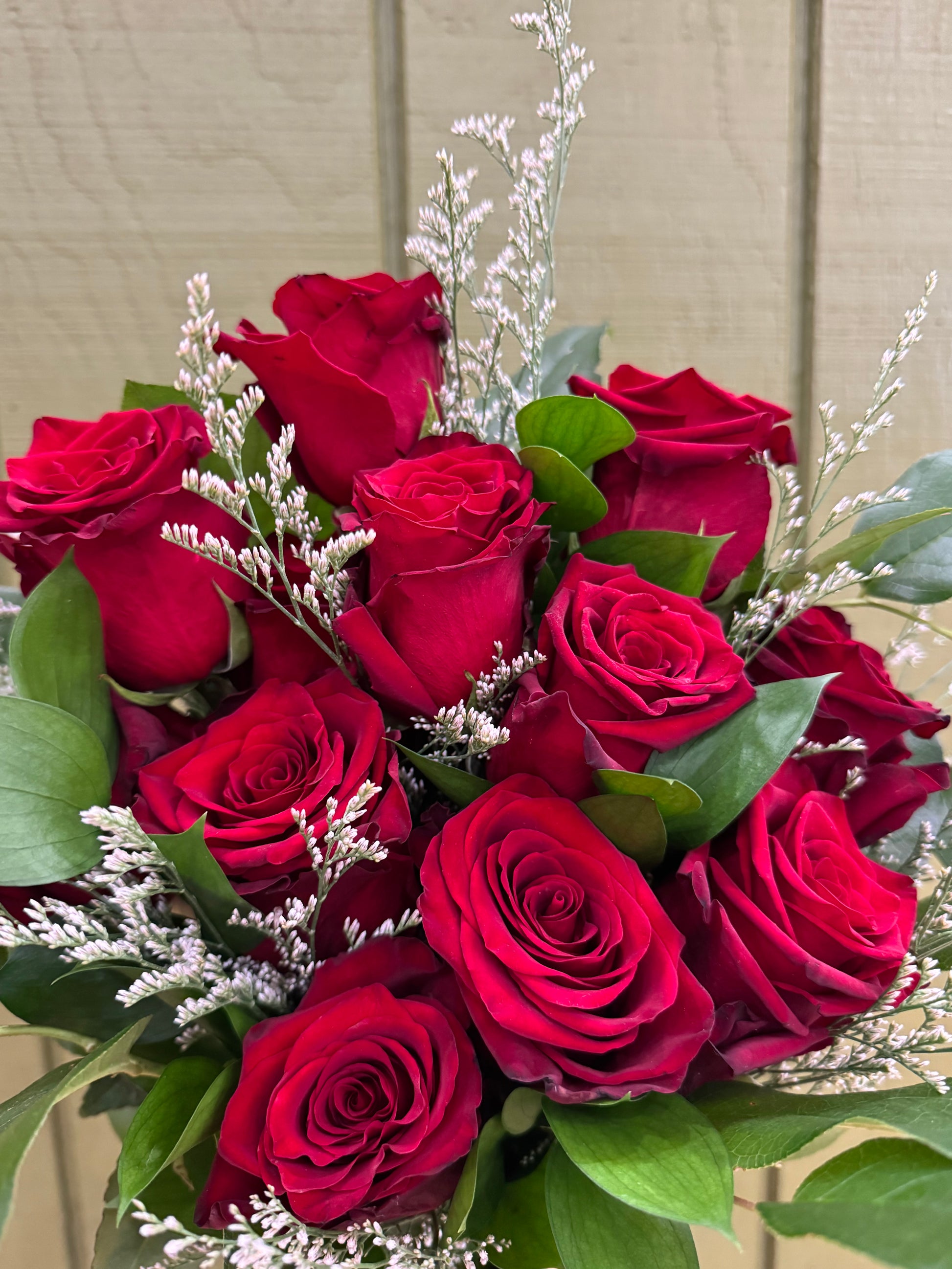 Carol Holly Bouquet - Dozen Roses Arrangement