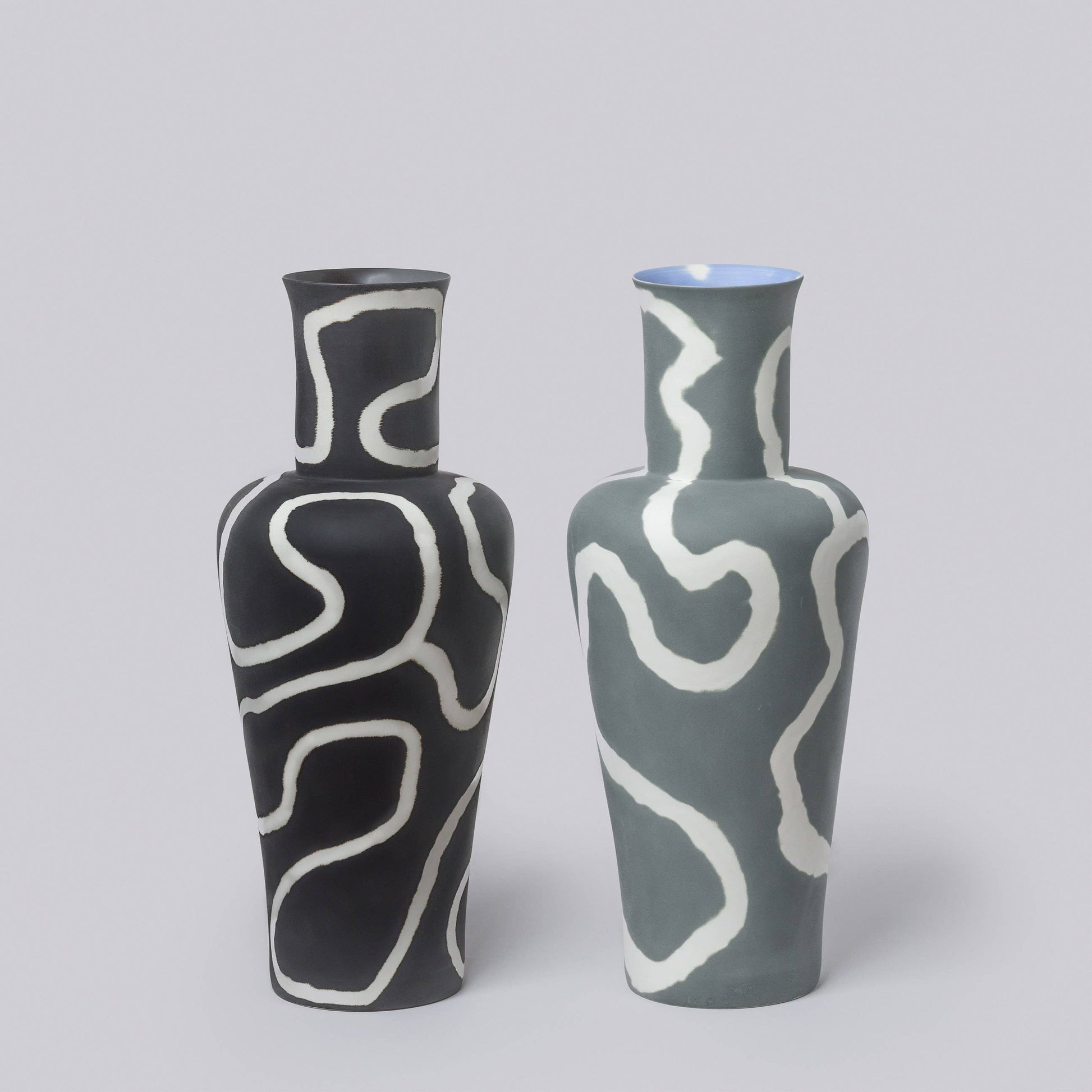 Large Memphis Style Porcelain Lover Vase: Memphis steel grey / Large Lover
