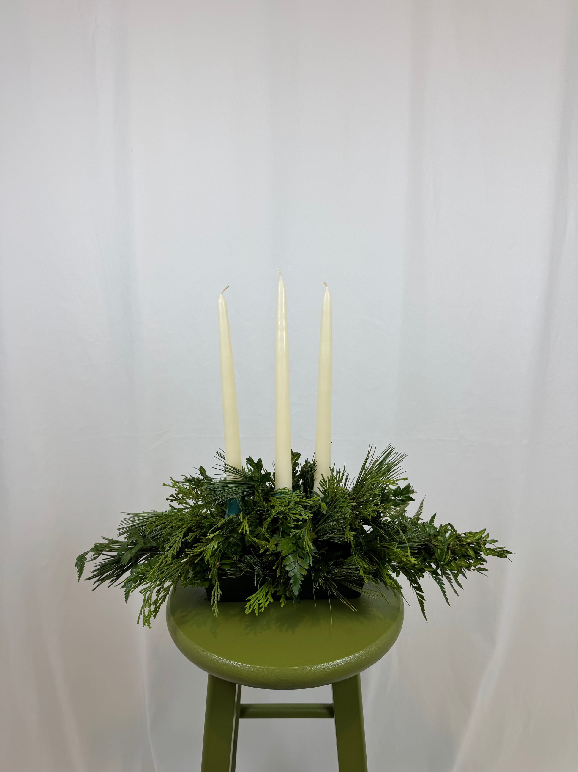 Small Long arrangements will be approximately 18 inches long, and will have 2 taper candles in the center if you select the option "Small-Add Candles".
