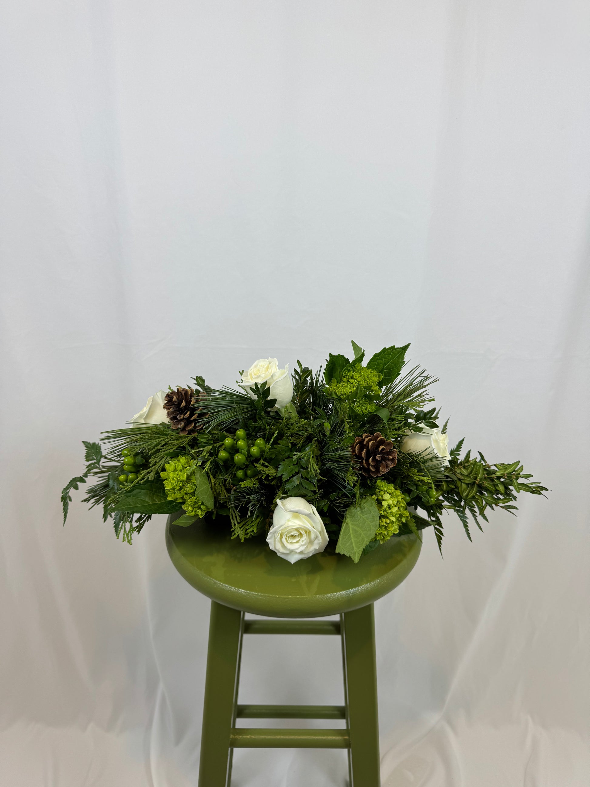 Compliment the seasonal decor of your home this holiday season with our Merry & Bright Centerpieces! Three color palettes are available: "Vibrant", "Natural", and "Just Greenery". Our Vibrant color palette will fill your home with exciting bright colors and holiday cheer, featuring stunning reds and greens with silver and gold accents. Alternatively, stay connected with nature with our "Natural" color palette, which will offer a more woodsy look with pinecones, whites, and neutral green colors. For those who are looking for a more minimalist look, or would like the arrangement to last as long as possible, select "Just Greenery", which will feature an assortment of special winter greens without any of the shorter lasting blooms. Please note that the "Just Greenery" arrangement will not come with any faux accents or any flowers, it is simply to appreciate the beauty of the greens themselves.