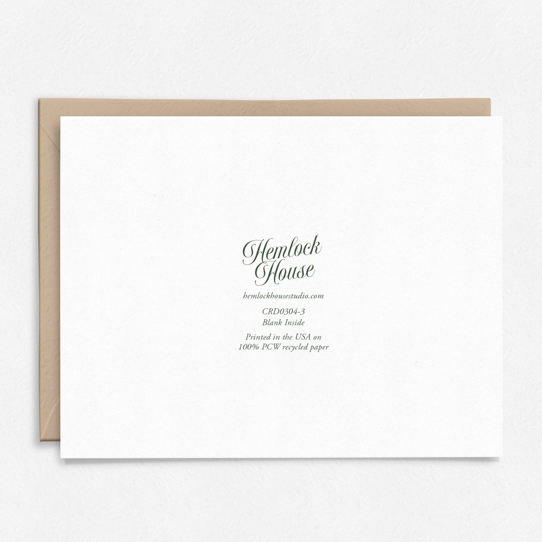 High-quality Thank You card digitally printed with an elaborate illustration of a moth. Blank Inside. 4.25" x 5.5" (A2). Printed in the USA on 100% PCW recycled 110lb heavyweight card stock. Includes a kraft paper envelope.